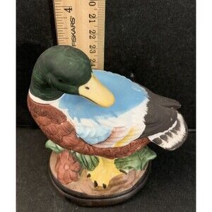 Add a touch of charm to your decor with this lovely hand-painted ceramic figurine of a multicolored duck. The intricate details on this figurine make it a wonderful addition to any room, perfect for any occasion or collection. The figurine depicts a mallard duck in a country style.