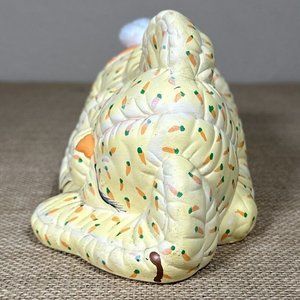 Hand Painted Ceramic Rabbit Figurine Quilted Bunny Carrots Dena's Molds VTG 1986