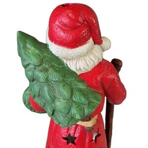 Hand Painted Ceramic Santa 11 inch tall Tea Light Holder Star Cutouts Early 2000