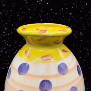 Hand Painted Ceramic Tall Vase Abstract Signed By Artist 1996 Pottery 11.5”T 3”W