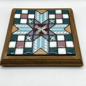 Hand Painted Hanging Vintage Ceramic 6" Tile Square Trivet Artist Carolyn Payne