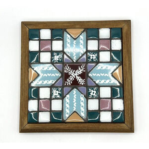 Hand Painted Ceramic Tile Trivet Square 6" Hanging Artist Carolyn Payne Vintage
