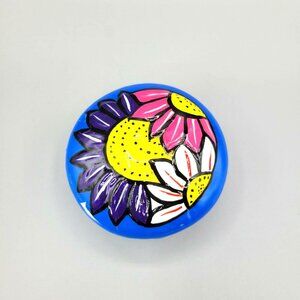 Hand Painted Ceramic Trinket Box with Lift Off Lid Bright Colorful Pottery Clay