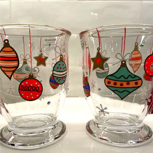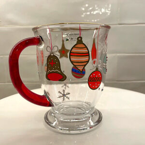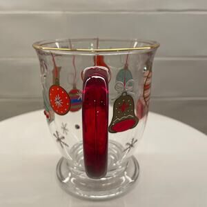 Hand Painted Christmas Ornament Thick Glass Mug Colorful Holiday Coffee Cup New