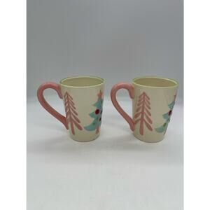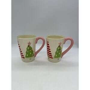 Hand Painted Christmas Tree Mugs Split P Set of 2