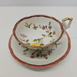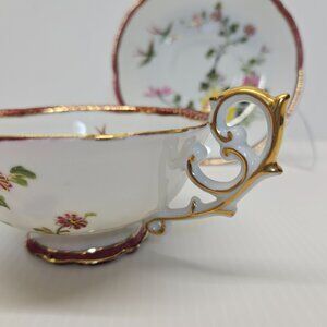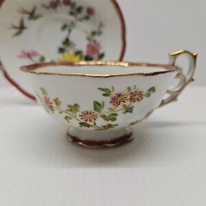 Vintage Chubu China beautiful "Cherry 2871A" floral design porcelain Teacup and Saucer from Occupied Japan.