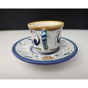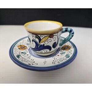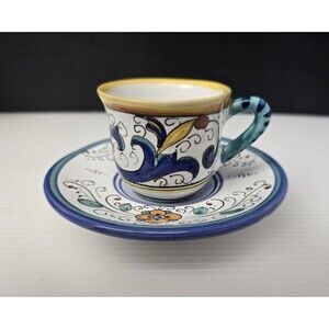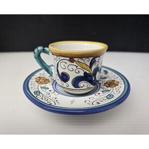 Elevate your espresso ritual with this exquisite Hand-Painted Deruta Espresso Cup and Saucer set.