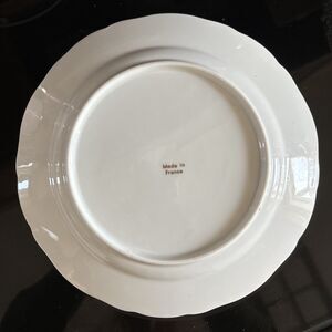 Vintage Fish Plate - a dinner sized white porcelain plate adorned with hand painted fish motif. Amazing detail in the design - the gently scalloped rim is highlighted in gold gilt. The backstamp is in gold gilt and reads "Made in France". Possibly a vintage version of the original antique fish plates - this appears to be later production maybe 1940's. In excellent vintage condition - minor shelf wear but no apparent damage or flaws - perfect display plate for your classic home decor.
