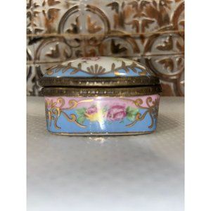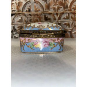 Hand Painted Floral Trinket Box Vintage Hinged Porcelain