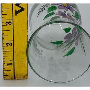 This elegant clear stemmed vase features beautifully hand-painted purple flowers, adding a touch of charm to any space. Standing 8 inches tall with a 2.5-inch diameter, it's perfect for displaying fresh or artificial blooms. Though preowned, this vase is in excellent condition with no visible flaws. Whether as a decorative piece or for practical use, it brings a pop of color and sophistication to your home decor. Ideal for collectors or as a thoughtful gift.