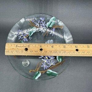 Hand Painted Glass Plate Bees Purple Flowers Decorative Floral Botanical Footed
