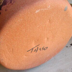 terra cotta and blue glazed