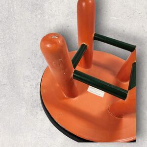 Small chips in the paint on the bottoms of the legs where it sits on the floor and a few spots on the outer rim (will be shown in photos)