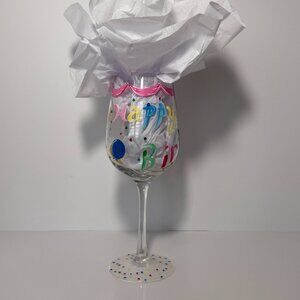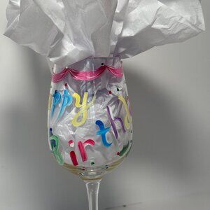 Hand Painted Happy Birthday Wine Glass by De-Lite