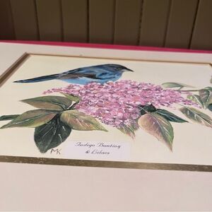 Hand Painted Indigo Bunting & Lilacs Matted Print