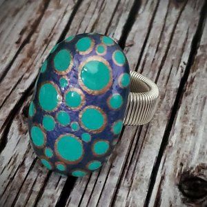A wonderful gift. A fun unique cocktail ring. This hand painted river stone with its soft curves and organic texture will be a beautiful and one-of-a-kind gift or addition to your own style.