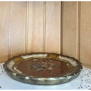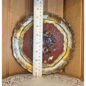 Hand Painted Italian Decorative Wooden Plate Florentine Floral Gold Accents Tray