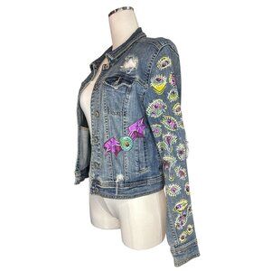 Hand Painted One-of-a-Kind Denim Jacket Medium Festival Streetwear Trap Vibes Raver Dopamine