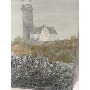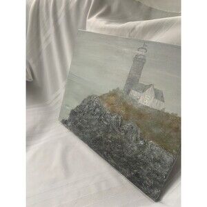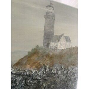 Hand Painted Original Painting On Canvas Lighthouse Heavily Textured Sea Waves
