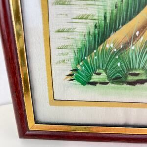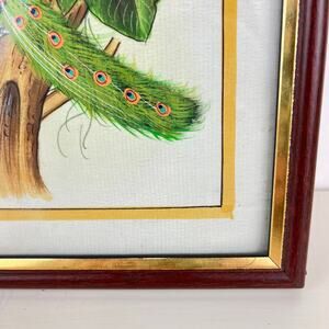 Pair of asian, hand painted and framed peacocks. Each measuring approx 7" x 9"