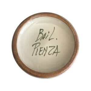 Very good, preowned condition. This handmade and hand painted long neck. Oil bottle was created by the well known. Pienza, Italy Artist., Linda Bai. Linda has her own pottery shop in the Tuscany area of Italy. She creates beautiful Italian pottery in the traditional style. This particular piece is a creamy off-white with slender green stems adorned with bright red, poppies both in buds and full blossom. Signed on the bottom.