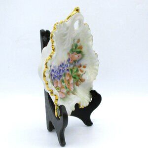 Hand Painted Porcelain Candy Trinket Dish With Gold Trim Violets Fluted