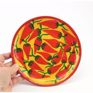 Hand Painted Pottery Bowl Plate Set Red Chili Peppers