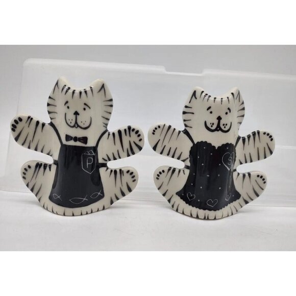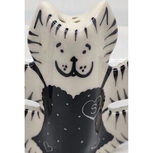 Hand Painted Pottery Cat Salt And Pepper Shakers Dorothy Steele Black & White
