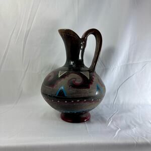 Keywords: pottery pitcher, hand painted vase, southwest decor, rustic home decor, decorative pitcher, vintage pottery, southwestern vase, art pottery, home accent, table decor, unique vase, handmade pottery