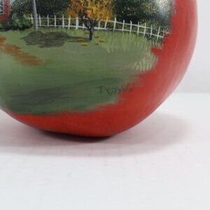 Up for your consideration is a unique hand painted schoolhouse scene. The shape is of an apple but I believe it's a dried pumpkin that's been painted. The artist is either I Wynn or Iwynn.