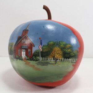 Hand Painted Pumpkin Apple Schoolhouse Scene Farmhouse Core Country Decor