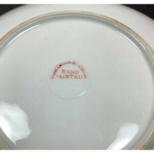 Very nice plate, no chips or cracks. Gold rimmed edge. Some light paint fading in some parts. Measures about 6.25" across.