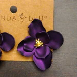Hand Painted Purple Flower Earrings Brass - Amanda Blu’s