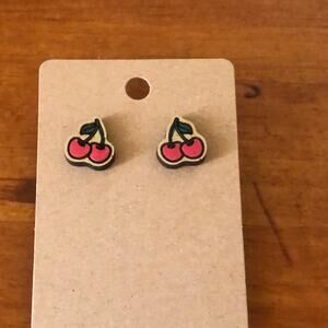 Hand Painted Red Cherry’s Stud Earrings Hypoallergenic Lightweight Posts