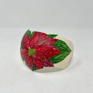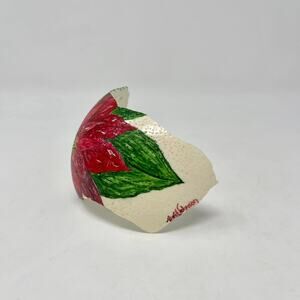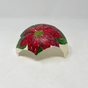 Hand Painted Red Poinsettia Flower on Partial Ostrich Egg Signed Nebraska Artist April Johnson