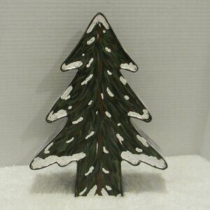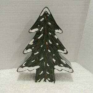 This is a lightweight metal Christmas tree decoration. has been hand painted on one side to depict a traditional colorful snow dusted tree and the other side is more minimal for years when you want a more minimal look. Easy to store and provides two great styles of decor.
