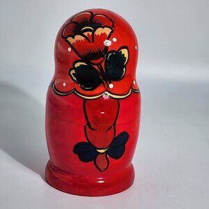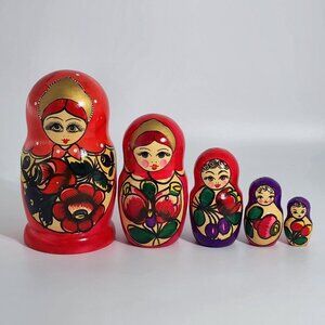 Hand Painted Russian Matryoshka Nesting Dolls Set Of 5 Red Floral Design Traditi