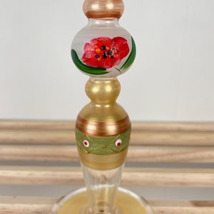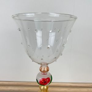 Hand Painted Signed Wine Glass Bohemian Gold Flower Floral Textured 8.5"