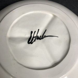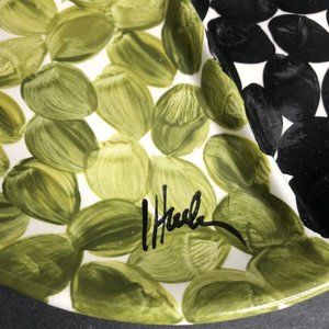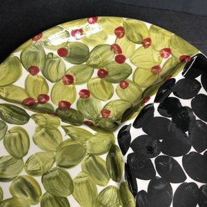 Studio Art Pottery Divided Olive Dish Black Green Hand Painted 7" Across SIGNED