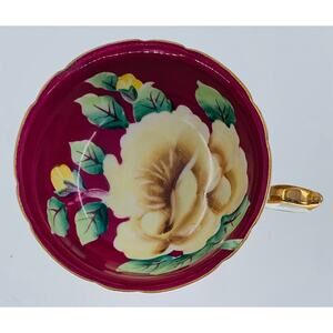 Hand-Painted Tea Cup Made in Japan by Orion China features a stunning red interior adorned with a vibrant yellow rose and luxurious gold accents. This elegant piece blends artistry and tradition, making it a perfect addition to any tea collection. Ideal as a Valentine’s or Easter gift for someone special, it combines beauty and functionality to create a memorable keepsake.