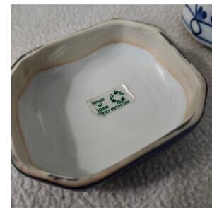 Hand Painted Thailand Vintage Trinket Dish Ceramic Blue White Rectangle