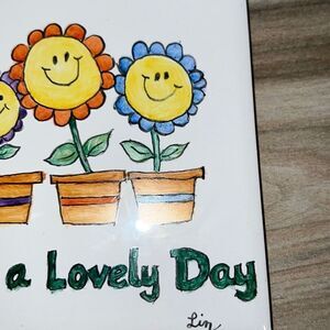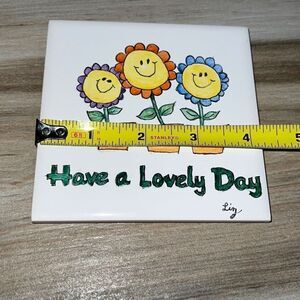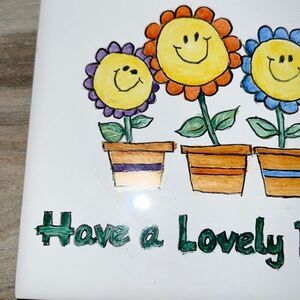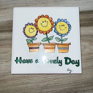 Hand Painted Tile Trivet Have A Lovely Day With Cork Back