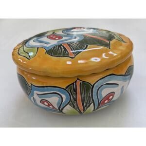 Hand Painted Trinket Box Leceagui Marca Made in Mexico Bright BEAUTIFUL