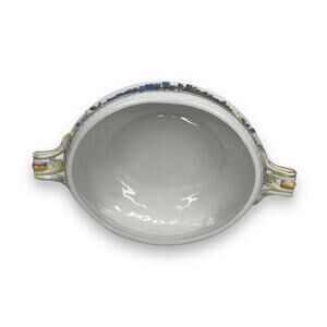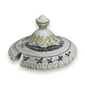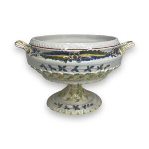 Vintage Faience Italian Footed Porcelain Tureen with Underplate Hand Painted Italy