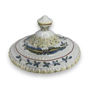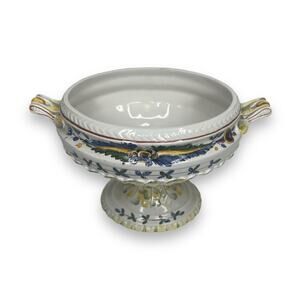 Hand Painted Vintage Italian Faience Footed Porcelain Tureen W/ Underplate Italy