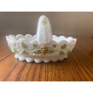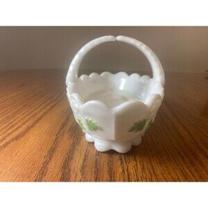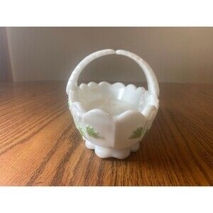 Hand Painted Westmoreland Milk Glass Grapes leaves Basket
