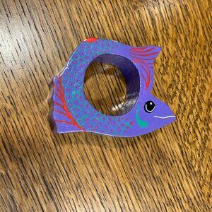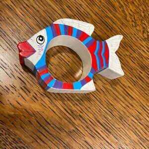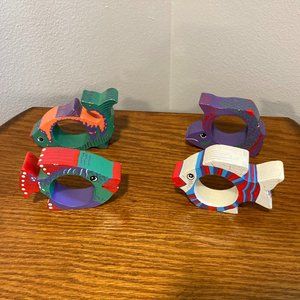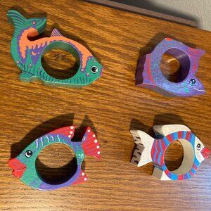 Hand Painted Whimsical Fish Napkin Rings Set of 4 Whimsical Tableware Kitsch