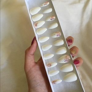 20pc, with 10 different sizes. Perfect to wear for a last minute party or date. Comes with glue and nail file. Easy to take off and can be reused with proper care.