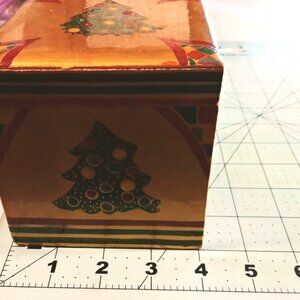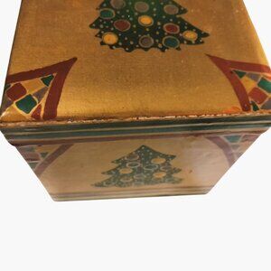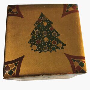 Hand Painted Wooden Christmas Tree Design Decorative Storage Box Gold Green