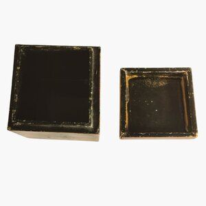 Small paint chip on one side. space at one corner lid connections. review last 2 photos